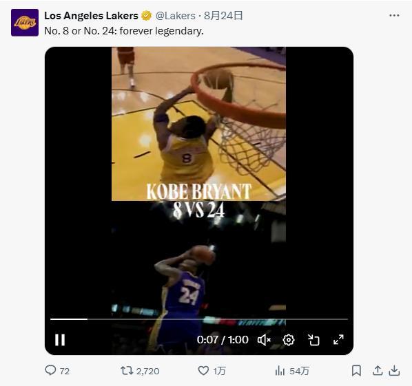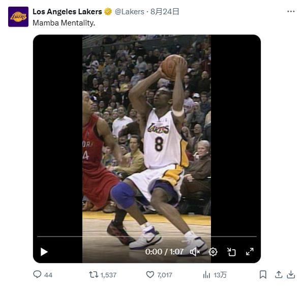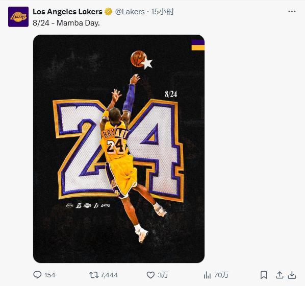 永远的紫金传奇!湖人官方连发15条推文庆祝科比生日&曼巴日!